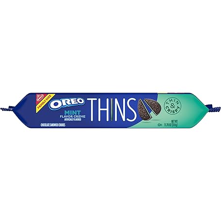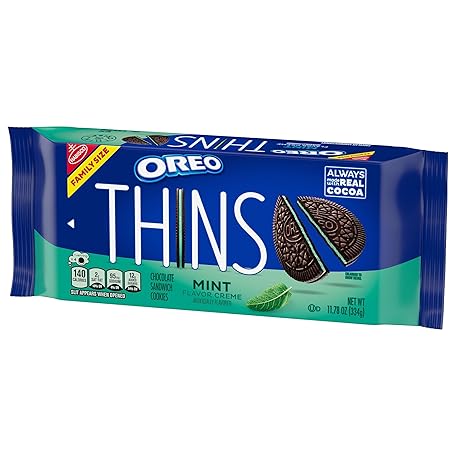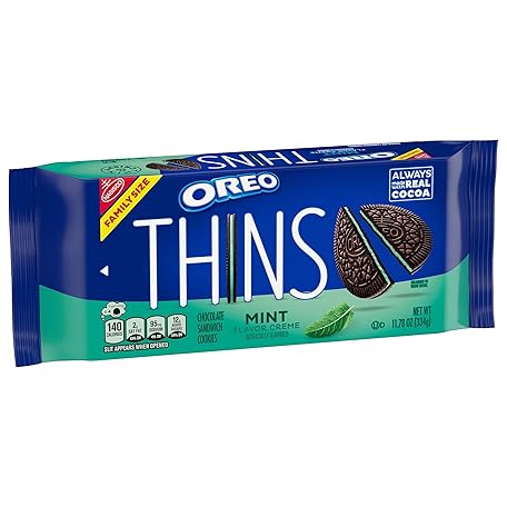 Sản phẩm OREO Thins Mint Creme Chocolate Sandwich Cookies, Family Size, 11.78 oz đang được bán với giá ưu đãi là $4.36 tại nước Mỹ.