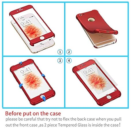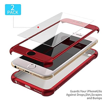 Thông tin sản phẩm ORETECH Designed for iPhone 6S Plus Case, iPhone 6 Plus Case with [2 x Tempered Glass Screen Protector] 360° Full Body Hard PC Soft TPU Silicone Cover for iPhone 6 Plus/6s Plus - 5.5'' Red