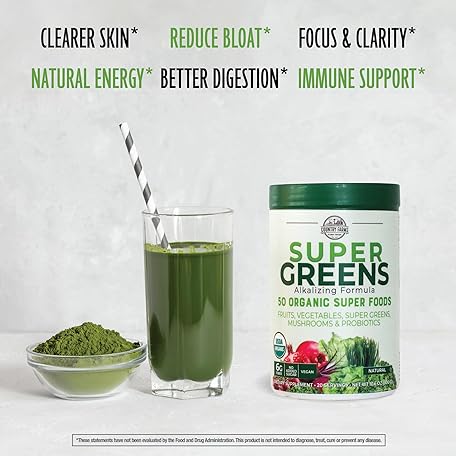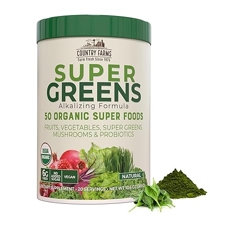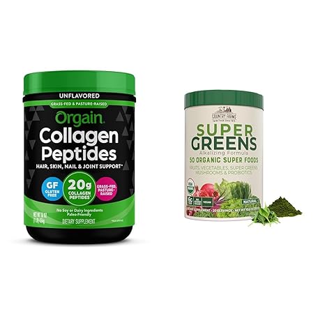 Orgain Hydrolyzed Collagen Peptides Powder, Country Farms Super Greens Powder, 50 Organic Superfoods