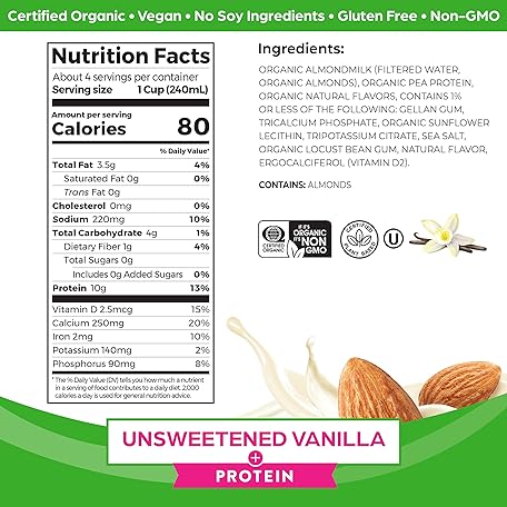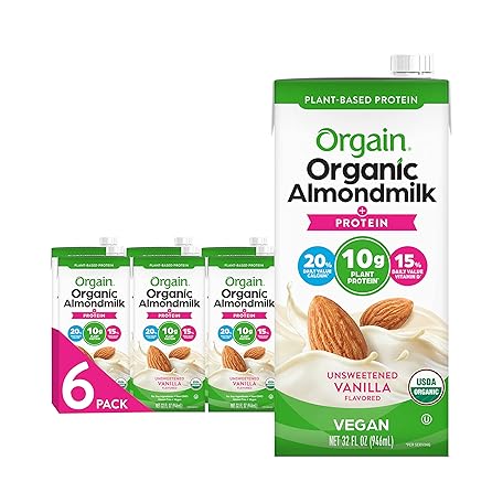 Thông tin sản phẩm Orgain Organic Vegan Protein Almond Milk, Unsweetened Vanilla - 10g Plant Protein, Vitamin D & Calcium, No Lactose, Dairy & Soy Ingredients, Gluten Free, No Sugar Added, 32 Fl Oz (Pack of 6)