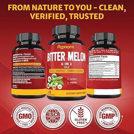 Thông tin sản phẩm Organic Bitter Melon Extract Capsules - 60 Pills 2 Month - Combined Neem, Fenugreek, Curcumin, Garlic & Papaya