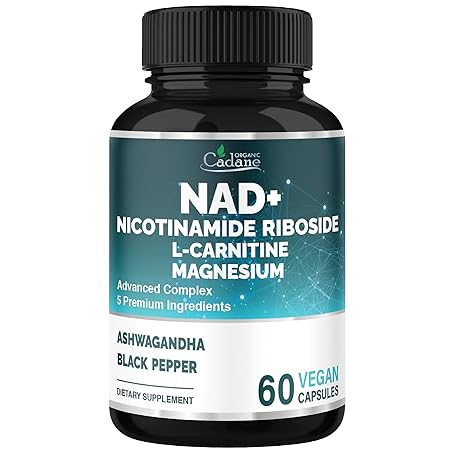 Organic Cadane Nicotinamide Riboside Supplement with L-Carnitine, Magnesium Glycinate, Ashwagandha, Black Pepper | Cellular Health & Wellness Support | Vegan, Non-GMO – 60 Capsules – 30-Day Supply
