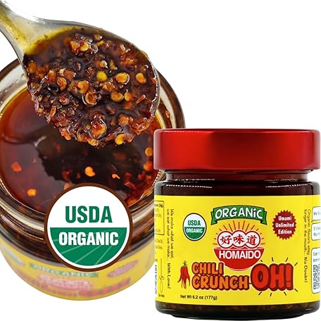 • Organic Chili Crunch-Oh! - Spicy Rich Umami Crisp Oil without MSG and Chemicals - Crafted in USA