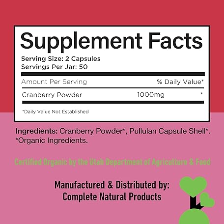 Organic Cranberry Capsules 500mg | Plant-Based, Vegan, Non-GMO, No Fillers | Supports Urinary Tract & Bladder Health | Organic Cranberry Powder Supplement