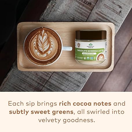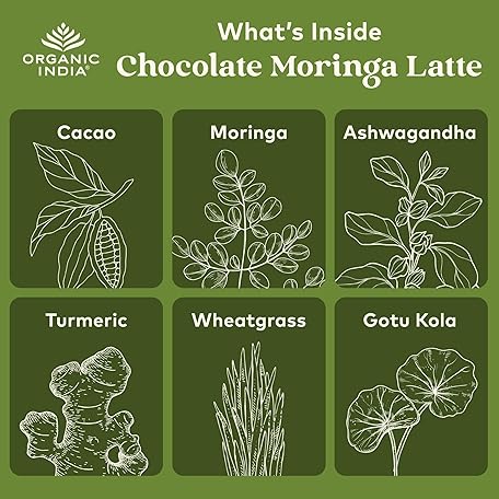 Thông tin sản phẩm ORGANIC INDIA Chocolate Moringa Latte Powder - Superfood Mix, Moringa Leaf Tea, With Ashwagandha and Turmeric, Dietary Supplement, Stress Support, Rich Cocoa, Caffeine Free - 3.52 Oz