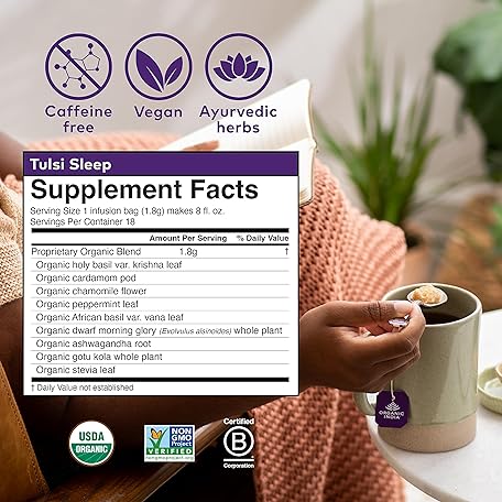 Thông tin sản phẩm ORGANIC INDIA Iced Tulsi Tea Bags Variety Pack - Assorted Tea, Holy Basil, Ashwaganda, Sleep, Honey Chamomile - Adaptogen, Vegan, USDA Certified Organic, Non-GMO - 18 Infusion Bags per Box (Pack of 3)
