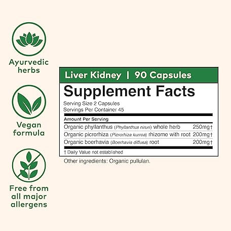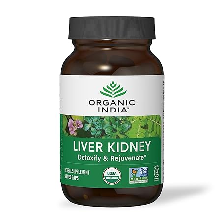Thông tin sản phẩm ORGANIC INDIA Liver Kidney Herbal Supplement - Detoxify & Rejuvenate, Supports Healthy Liver & Kidney Function, Vegan, Gluten-Free, Kosher, USDA Certified Organic, Non-GMO - 90 Capsules