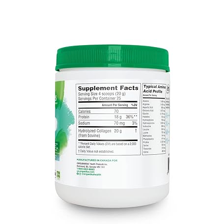 Thông tin sản phẩm Organika Enhanced Hydrolyzed Collagen Peptides Powder: Easy Absorption Unflavored Collagen Powder for Skin, Hair, Nails, Joints, Muscles, & Gut - Keto, GMO-Free, Grass-Fed - 25 Day Supply - 18 oz