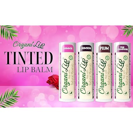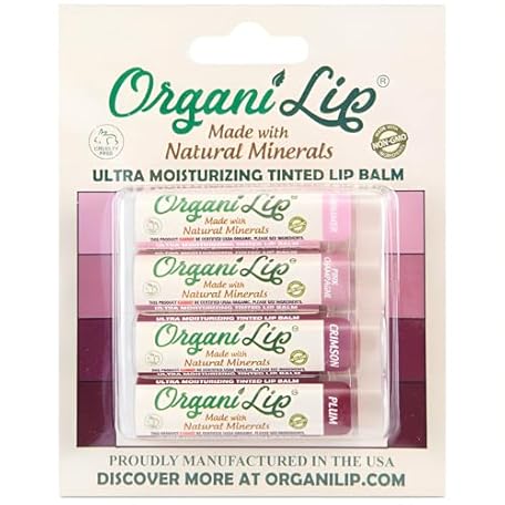 Thông tin sản phẩm OrganiLip Tinted Lip Balm Moisturizer - Natural Moisturizer for Cracked & Dry Lips - All-Day Ultra Moisturizing Lip Care for Kids and Adults - Shimmer, Pink Champagne, Crimson, Plum Colors - 4 Pack