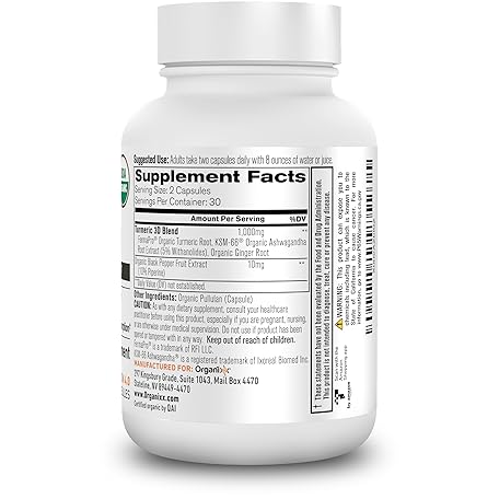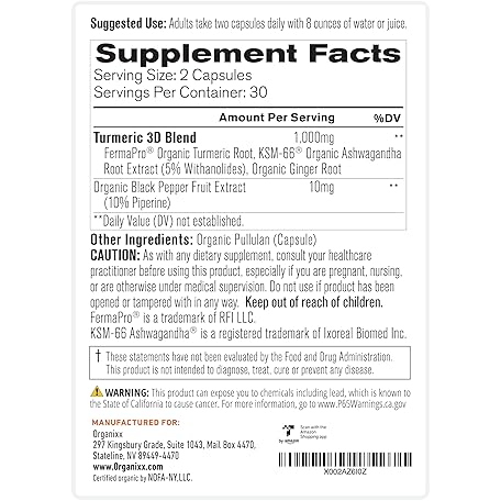 Thông tin sản phẩm Organixx USDA Organic Turmeric Curcumin Supplement with Ashwagandha, Turmeric & Ginger – Immune & Joint Support, Fermented for Maximum Bioavailability, 60 Vegetarian Capsules