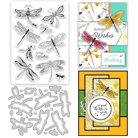 • ORIGACH Dragonfly Clear Stamps and Metal Cutting Dies Set for Card Making, Embossing Template and Silicone Stamp for DIY Scrapbook Album Craft Decor