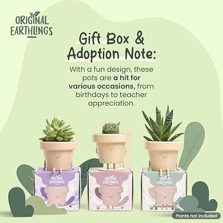 Sản phẩm Original Earthlings Sitting Small Plant Pot - 4 Inch Cute Plant Pot - Succulent & Cactus Christmas Planters, Removable Drainage Plug, Cute Decor Plant Gifts for Plant Lovers, Teacher Gifts đang được bán với giá ưu đãi là $21.7455 tại nước Mỹ.