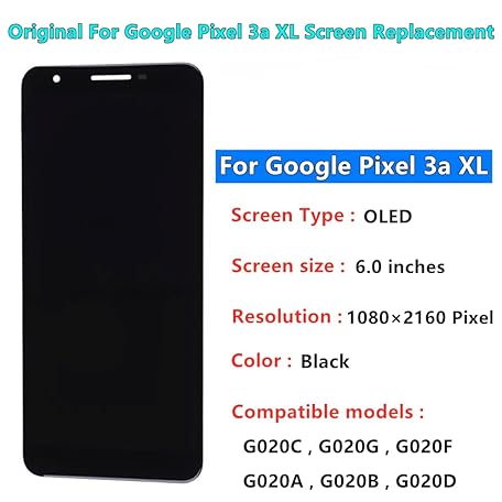 Original for Google Pixel 3A XL Screen Replacement Pixel 3A XL G020C G020G G020F G020A G020B G020D Display Touch Screen Digitizer Assembly with Tool.