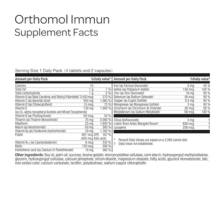 Thông tin sản phẩm Orthomol Immun Tablet and Capsule, Immune Support Supplement, 30-Day Supply, Vitamins A, B, C, D, E, Zinc, Iodine