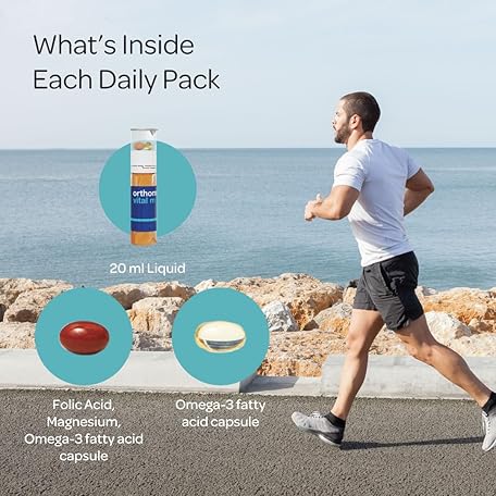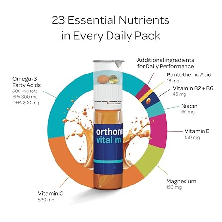 Thông tin sản phẩm Orthomol Vital M Vial, Men's Multivitamin, 7-Day Supply, Vitamins A, B, C, D, E, K, Calcium, Iodine, Omega-3…