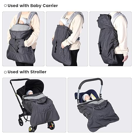 Thông tin sản phẩm Orzbow Baby Carrier Cover Winter, Universal Baby Carrier Rain and Wind Cover with Pockets, Detachable Hood and Storage Bag, Waterproof & Windproof, Dark Grey Dinosaur