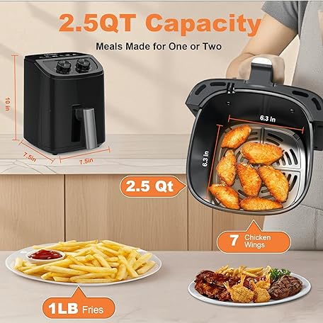 Thông tin sản phẩm OSTBA 2.5QT Air Fryer for 1–2 People, Small Air Fryer with 6 Menu Options, Dual Knob Manual Temp & Timer, 3D Rapid Air Circulation, Nonstick & Dishwasher Safe Basket, Oil-Free Healthy Cooking