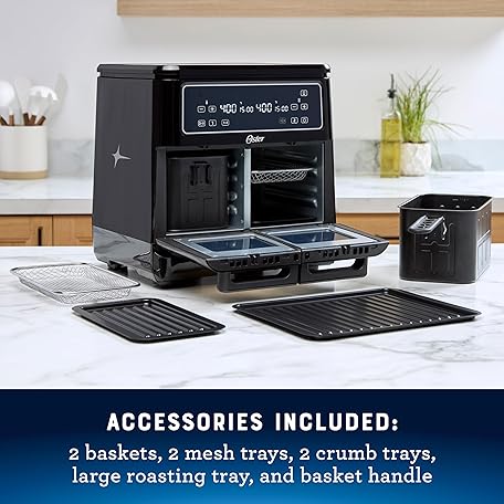Sản phẩm Oster 11-Quart Dual Air Fryer Oven with 2 Cooking Zones, Large Capacity Air Fryer with 6 Cooking Functions & 2 Baskets đang được bán với giá ưu đãi là $141.6891 tại nước Mỹ.