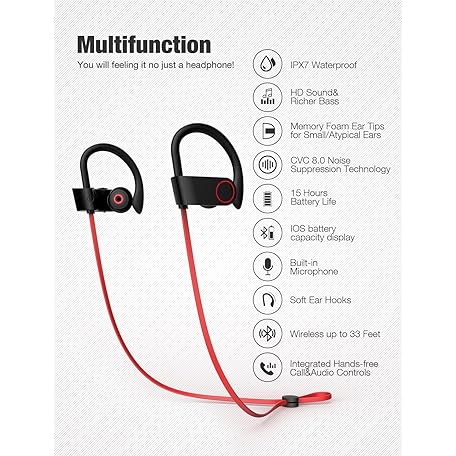 Thông tin sản phẩm Otium Bluetooth Headphones,Wireless Earbuds IPX7 Waterproof Sports Earphones with Mic HD Stereo Sweatproof in-Ear Earbuds Gym Running Workout 15 Hour Battery Sound Isolation Headsets