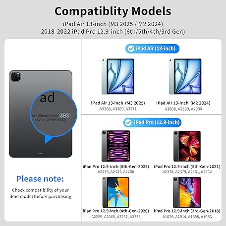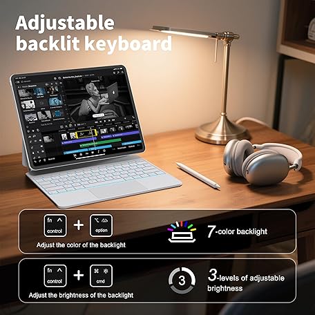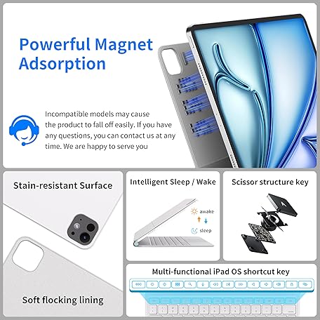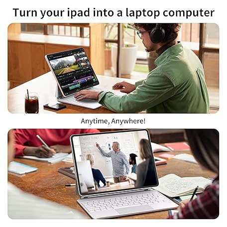 Otuoor iPad Air 13 Inch Case Keyboard (M3 2025 / M2 2024) & iPad Pro 12.9 inch (6th,5th,4th,3rd Gen) Magic Keyboard with 7 Color Backlight, Multi-Touch Trackpad, Magnetic Stand,Auto Sleep/Wake (White)