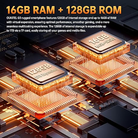 OUKITEL G3 Rugged Smartphone Unlocked -16GB+128GB/1TB TF 6” HD Display IP68/IP69K Rugged Android Phone, 6300mAh Battery 13MP Rear Camera Waterproof Cell Phones, GPS/3.5mm Jack/Face ID/4G Dual Sim