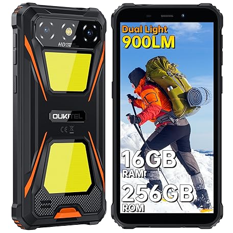 Thông tin sản phẩm OUKITEL G5 256GB Rugged Smartphone Unlocked 16GB+256GB/1TB TF Android Rugged Cellphones, 6300mAh Battery,6”HD Display IP68/IP69K,13MP+5MP Waterproof Phones,Dual Sim/NFC/Dual Camping Light/2025 Orange