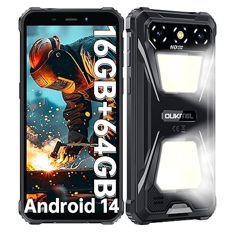 OUKITEL G5 Rugged Smartphone Unlocked - 16GB+64GB (1TB TF) Rugged Android Phone with Camping Light, 6300mAh Battery, 6.0" HD Screen Cell Phone, 13MP Main Camera, Face ID/GPS, Supports T-Mobile, Black