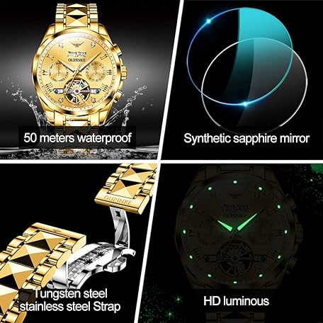 Sản phẩm OUPINKE Gold Men Automatic Mechanical Wrist Watches Luxury Dress Tungsten Steel Luminous Waterproof Sapphire Diamond Calendar Best Gifts Men đang được bán với giá ưu đãi là $401.12 tại nước Mỹ.