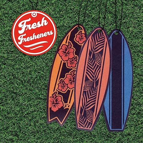 Outdoor Adventure Car Air Freshener 4 Pack Scented With Premium Oils By Fresh Fresheners (Surfboard)