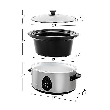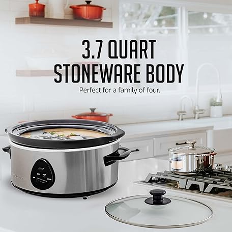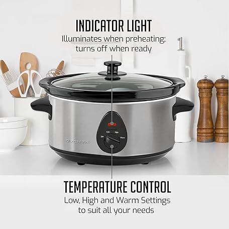 Thông tin sản phẩm OVENTE Electric Slow Cooker with 3 Cooking Settings, Non-Stick and Dishwasher Safe Stoneware, Stainless Steel Body, Glass Lid, 3.7 Qt Oval Pot for Entrees, Soups, Sauces, Stews & Dips, Silver SLO35ABR