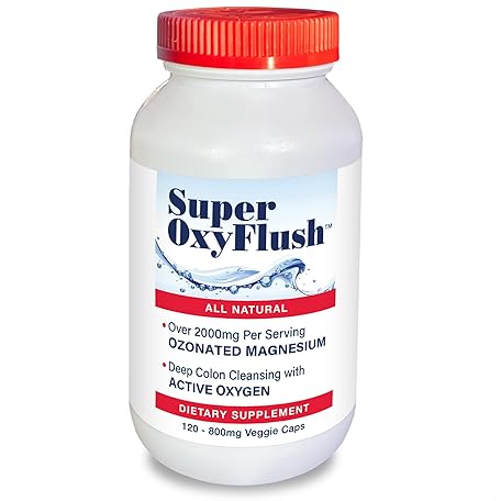 • Oxygen America's Super OxyFlush Colon Cleanser with Ozonated Magnesium Oxide – 120 Capsules – Gentle Detox & Cleanse for Adults – Allergen-Free | Non-GMO Supplement