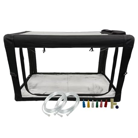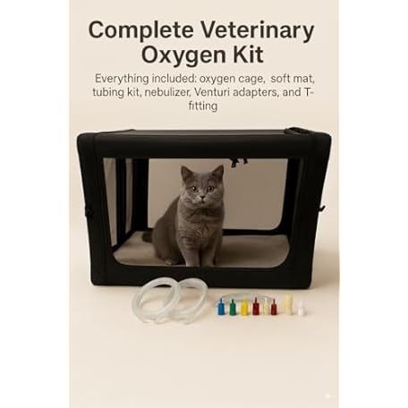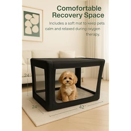 Thông tin sản phẩm Oxygen Therapy Cage for Pets – Veterinary Oxygen & Nebulizer Chamber for Dogs, Cats, Puppies, Sheep – Portable Oxygen Concentrator with Tubing Kit, Soft Mat, Venturi Adapters, Nebulizer, T-Fitting