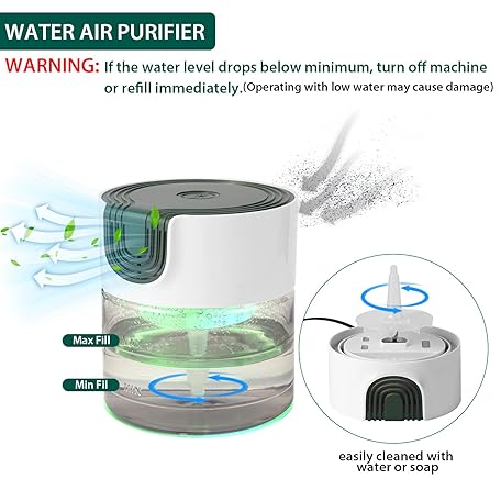 Thông tin sản phẩm Oxyvana Water Air Purifiers for Home, Quiet Variable Speed Water Based Air Purifier with 7 Color Night Light, Air Washer Humidifier for Home, Bedroom, Office, Pet Odors