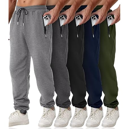 OZYJD Mens Sweatpants with Zipper Pockets 5 Pack Athletic Joggers for Men Warm Slim Fit Track Workout Running Sweat Pants