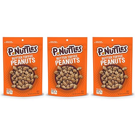 P-nuttles Butter Toffee Peanuts 5.25 Ounce - Resealable Snacking Bags of P-Nuttles, Made in the USA, Kosher (Pack of 3) (Original)