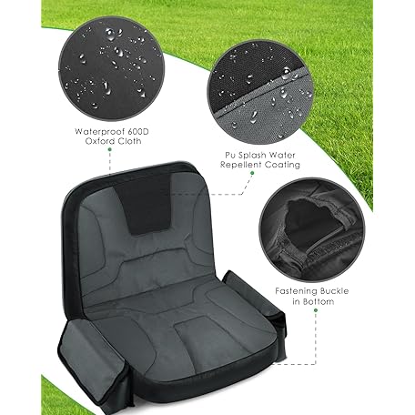 PACETAP Tractor Seat Cover with Drink Pouch, Heavy Duty 600D Oxford Waterproof Riding Lawn Mower Seat Cover Fits Kubota, for Cub Cadet, for Ford, for Mahindra, for Husqvarna (Black,Medium)