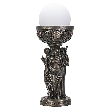 Pacific Giftware Gothic Triple Goddess Maiden Mother Crone Triune Oracle Sculptural Bronze Finish White Globe Shade Decorative Celtic Design Desktop Table Lamp 14.25" Tall