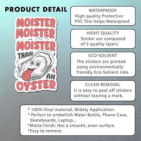 (Pack of 3) Moister Than an Oyster Sticker, Waterproof, 3 Inches