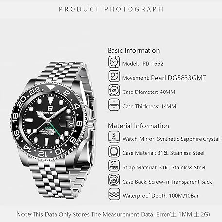 Thương hiệu PAGRNE DESIGN là cái tên nổi tiếng được rất nhiều khách hàng trên thế giới chọn lựa. Với kiểu dáng đẹp mắt, sang trọng, sản phẩm PAGRNE DESIGN Men Watch Pagani Design GMT Watches for Men Automatic 40MM Date 100M Waterproof Stainless Steel Sapphire Glass Mechanical Wristwatches PD-1662 là sự lựa chọn hoàn hảo nếu bạn đang tìm mua một món cho riêng mình.