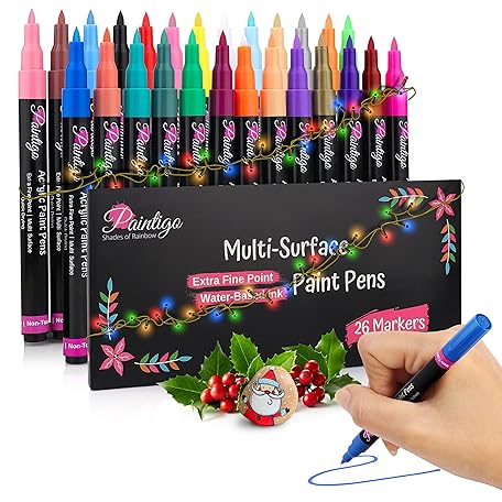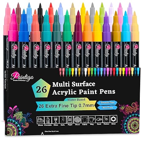 Thông tin sản phẩm PAINTIGO Extra Fine Acrylic Markers – 26 Paint Pens for Rock Painting, Canvas, Wood, Glass, Ceramic, Fabric, DIY Crafts, Scrapbooking, Drawing, Detailing, Art Supplies