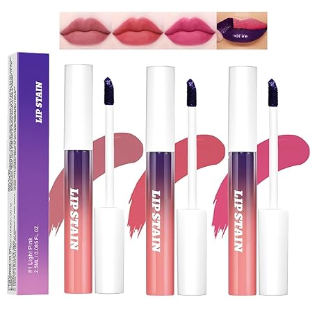Pakivs 3 PCS Peel Off Lip Stain Set,Pink Peel Off Lip Liner Lip Tint Set,Long-Lasting Matte Peel Off Lip Gloss,Waterproof Non-stick Cup Peel Off Lipstick