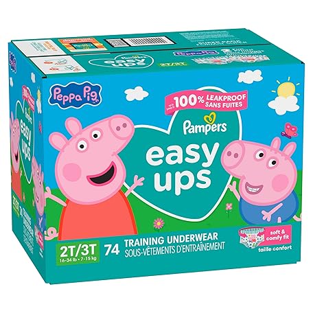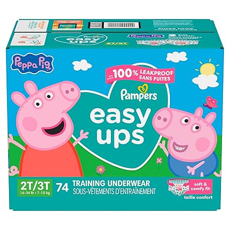 Thông tin sản phẩm Pampers Training Pants - Easy Ups Girls & Boys - Size 2T-3T, 74 Count, Peppa Pig Potty Underwear (Packaging May Vary)