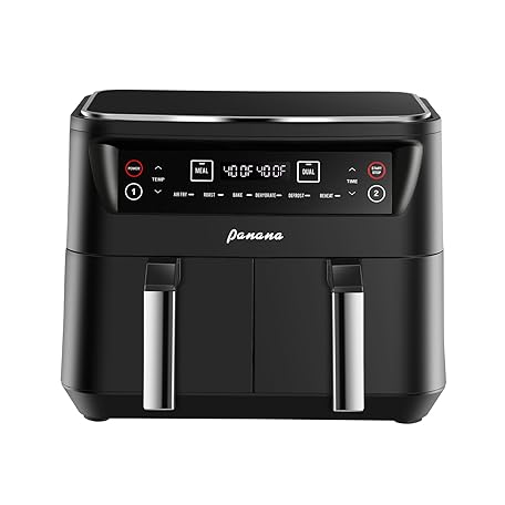 Panana Air Fryer 8.5QT, 6 in 1 Air Fryers Dual Zone 2 Busket,1800W Air Fryer for Roast, Bake, Dehydrator, Defrost, Reheat Quick Meals