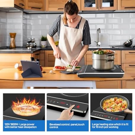 Thông tin sản phẩm Panana Portable Induction Cooktop Hot Plate Countertop Burner 1800W, 10 Temp Levels, Timer, Auto-Shut-Off, Touch Panel, LED Display, Auto Pot Detection, Child Safety Lock (LED Display - Silver)