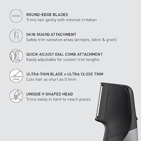 Thông tin sản phẩm Panasonic Body Groomer for Men and Women, Unisex Wet/Dry Cordless Electric Body Hair Trimmer with 2 Comb Attachments, Multi-Directional Shaving in Sensitive Areas - ER-GK80-S (Black)