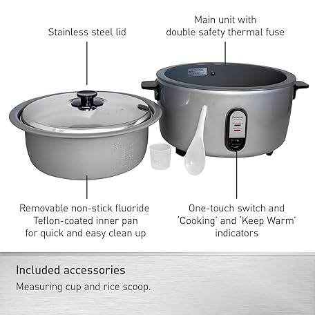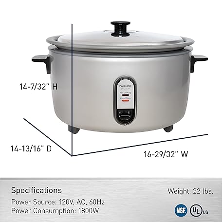 Thông tin sản phẩm Panasonic Commercial Electric Rice Cooker, 120V Extra-Large Capacity 60-Cup (Cooked), 30-Cup (Uncooked) with One-Touch Operation - SR-GA541FH - Silver