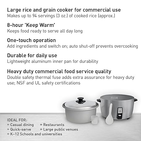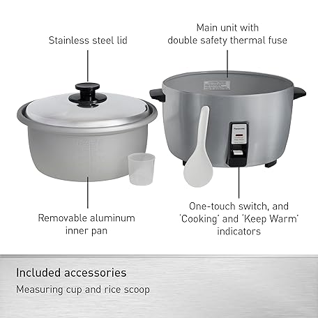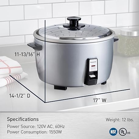 Thông tin sản phẩm Panasonic Commercial Electric Rice Cooker, 120V Large Capacity 46-Cup (Cooked), 23-Cup (Uncooked) with One-Touch Operation - SR-GA721L - Silver