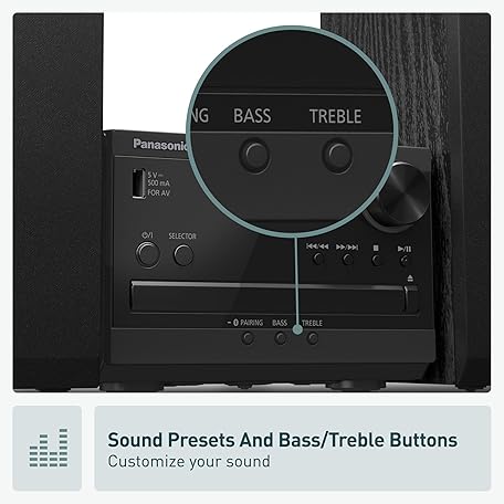 Thông tin sản phẩm Panasonic Compact Stereo System with CD Player, Bluetooth, FM Radio and USB with Bass and Treble Control, 20W Stereo System for Home with Remote Control - SC-PM270PP-K (Black)