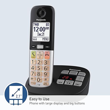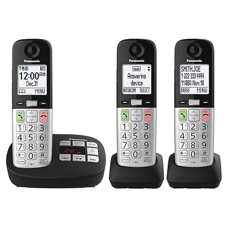 Thông tin sản phẩm Panasonic Cordless Phone, Easy to Use with Large Display & Big Buttons, Flashing Favorites Key, Flashlight, Call Block, Volume Boost, Talking Caller ID, House Phones, 3 Cordless Handsets - KX-TGU433B