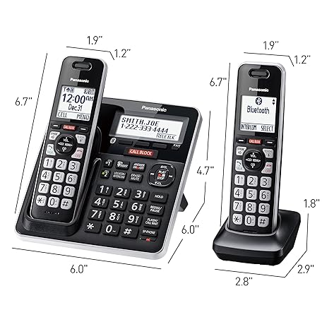 Thông tin sản phẩm Panasonic Cordless Phone with Advanced Call Block, Link2Cell Bluetooth, One-Ring Scam Alert, and 2-Way Recording, Cordless Phone with Answering Machine, 5 Handsets - KX-TGF975B (Black/Silver Trim)